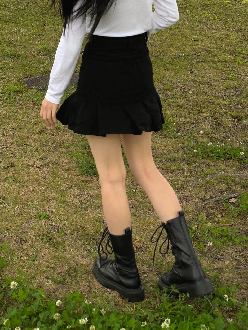 ブラックテニスデニムスカート DPB43088