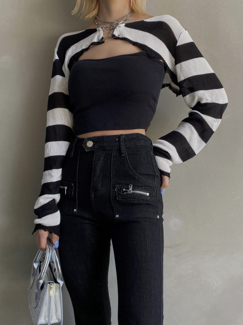 ボーダーショートカーディガン DPB26085