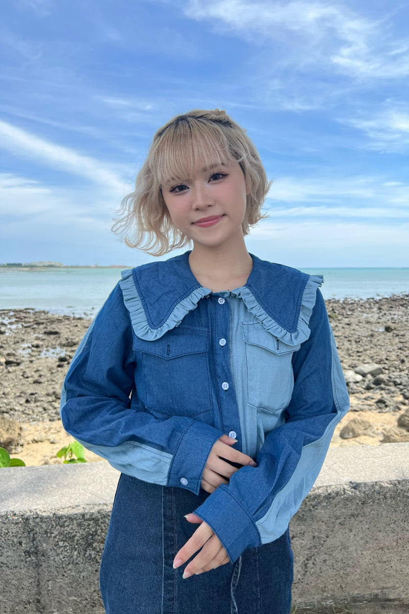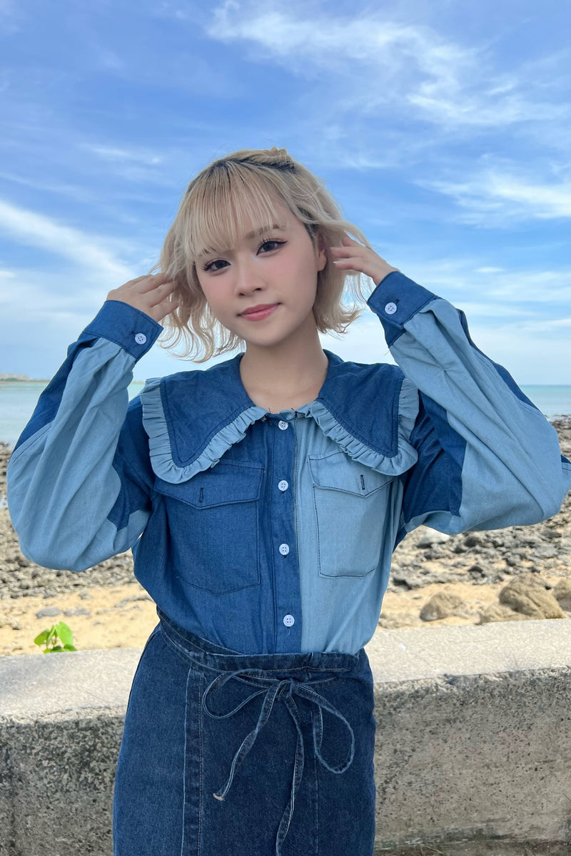 フリルデザインデニムトップス DPA89031
