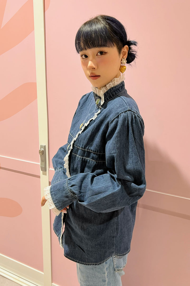 ハイネックレースデニムシャツ DPA89053