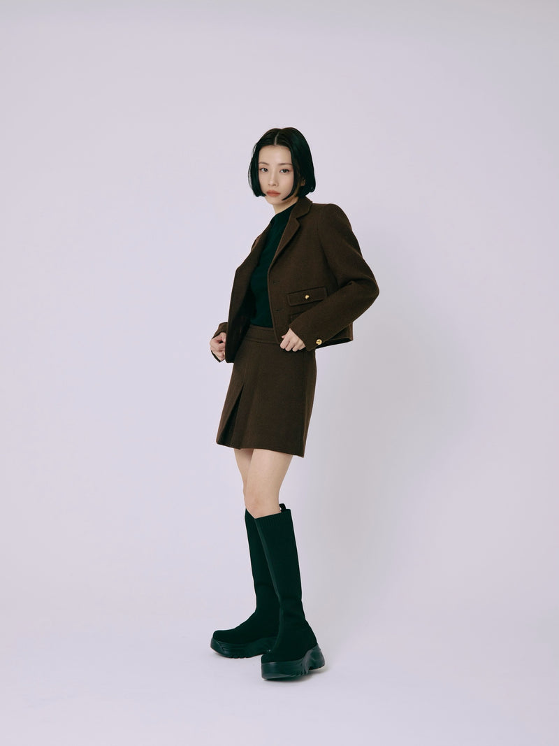 スカートにもパンツにも合わせやすい、洗練されたデザインです。