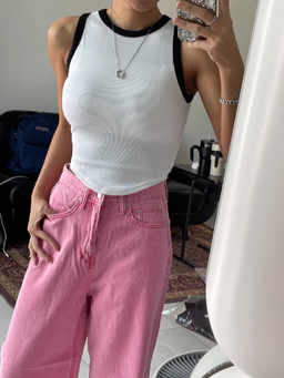 ワイドピンクデニムパンツ DPB71217